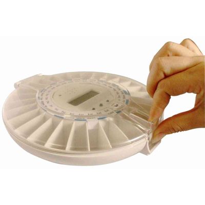 An automatic pill dispenser is a perfect solution for patients suffering from Alzheimer’s disease or mild dementia, mentally or visually impaired patients, or patients who need to take multiple different medications and need notifications when certain medications have to be taken. The automatic pill dispenser can be filled with a supply of pills that lasts between one week and one month, depending on the number of daily doses. A loud acoustic signal announces a certain pill needs to be taken. Only that specific pill is available to the patient, as previously set in the dosing area. If the tablet is not taken at the set time, it is safely stored in a locked tablet dispenser and notification send to HomeTab.