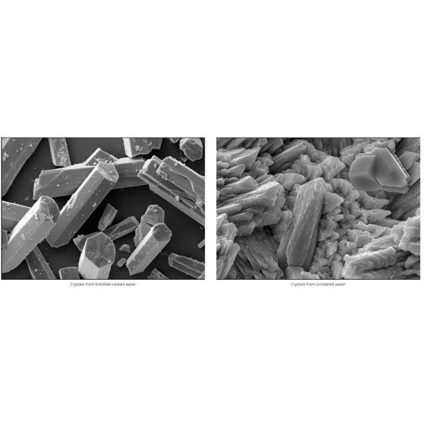 Using modern microprocessors and signal processing techniques, the ENiGMA produces a complex, frequency modulated waveform. When these frequencies are applied, an oscillating electric field is induced into the water resulting in agitation of water molecules sufficient to trigger the release of carbon dioxide (CO2) resulting in the premature precipitation of calcium bicarbonate. Because precipitation occurs in the bulk of the water, the crystals seed onto other naturally occurring ions in the water, such as zinc. Their size and shape bear no physical resemblance to those formed in untreated water and they remain in suspension until discharged to drain.
