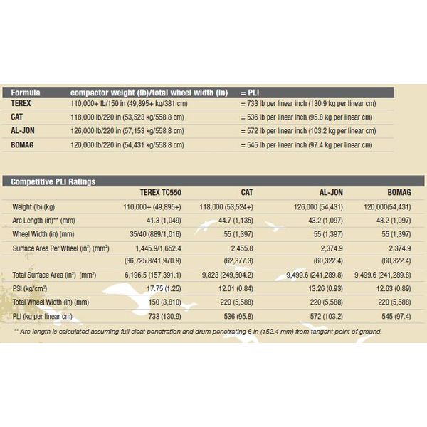 Due to the rolling motion of the wheels, the surface area can be simplified to a theoretical line with a length equal to the width of the wheels. This unit is known as PLI—Compactive-effort pounds per linear inch.