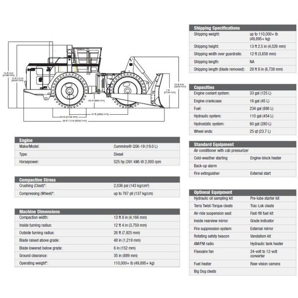 • New Tier III Cummins® QSK-19 turbocharged, charge-air-cooled diesel engine—525 hp (391 kW) at 2,000 rpm