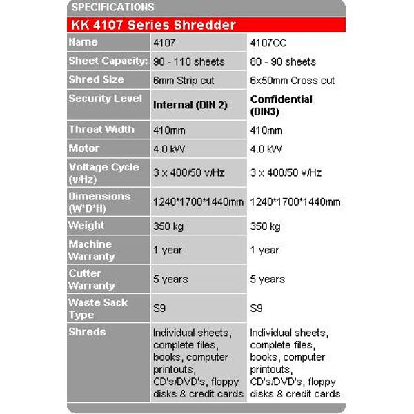 KK - Model 4107 Series - Document Shredder