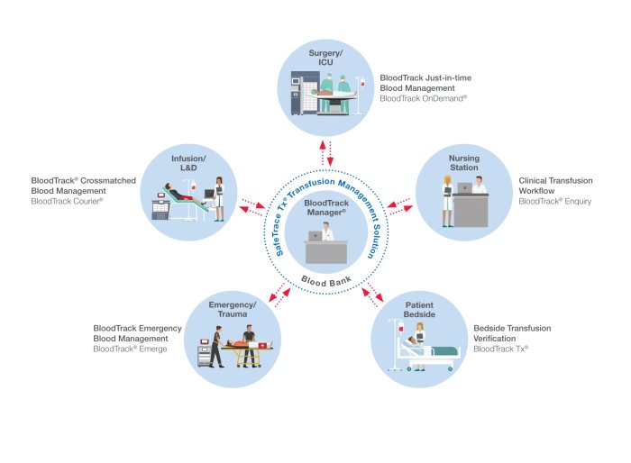 BloodTrack is a modular suite of blood management and bedside transfusion software solutions that secure, monitor and verify your hospital’s blood supply chain to help ensure the right blood product is transfused to the right patient, at the right time, in the right condition, while producing a complete audit trail for compliance. The software works with standard storage units (e.g. refrigerators, platelet incubators), and the BloodTrack® HaemoBank® blood storage device, to help provide safe point-of-care blood management; and an array of fixed and mobile devices for bedside patient verification during phlebotomy and transfusion administration.