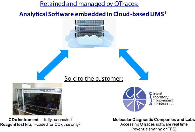 In partnership with Bio-IT Solutions, Inc. OTraces has developed a cloud-based system in which companies seeking higher accuracy send their raw biomarker data to OTraces’ servers for almost instantaneous processing, wherein the licensee or partner could achieve improved accuracy in exchange for paying OTraces either on a fee-for-service or revenue-sharing basis.