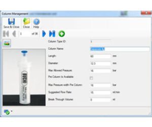 Database of column specifications, suggest flow rates, maximum pressure ratings for the wide range of BUCHI cartridges and columns. Other cartridges or columns can easily be added to the database.