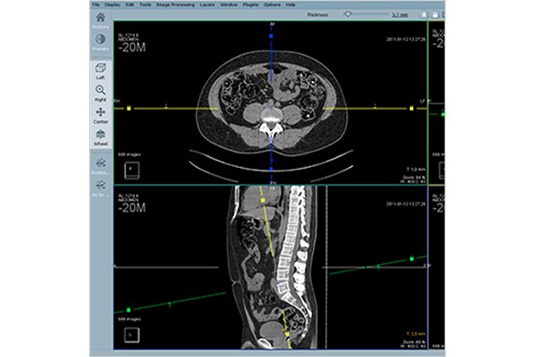 Lets you compress, secure, store, and view x-ray images using cutting-edge display and viewing tools (zoom, magnifier, annotations, distance measurement, measurement tracking, etc.). The user can view coronarographic, PET, and nuclear medicine images at the same time, as well as more classic imaging (MRI, CT scan, ultrasound, etc.). The use of labels associated with the exams lets you create groups of exams and access them via one click. A personalised search system allows you to access the desired patient file or exam very quickly. The display is optimised to allow multi-screen display, as well as the integration of the RIS and PACS software installed on the same diagnostic stations.