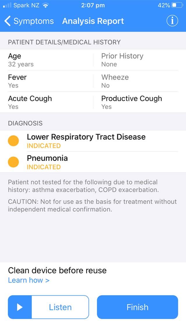 Developed in Australia, the ResApp is a digital solution to the challenges of diagnosing respiratory diseases. By using artificial intelligence, the ResApp listens to a patients cough sounds and enables rapid, low cost, point of care and remote diagnosis of respiratory diseases. Clinically validated to be over 85% accurate, the ResApp has the power to change how respiratory diseases are diagnosed today. With earlier and more accurate diagnosis, clinicians can begin treatment sooner saving lives of both children and adults. The future of respiratory disease diagnosis is digital!