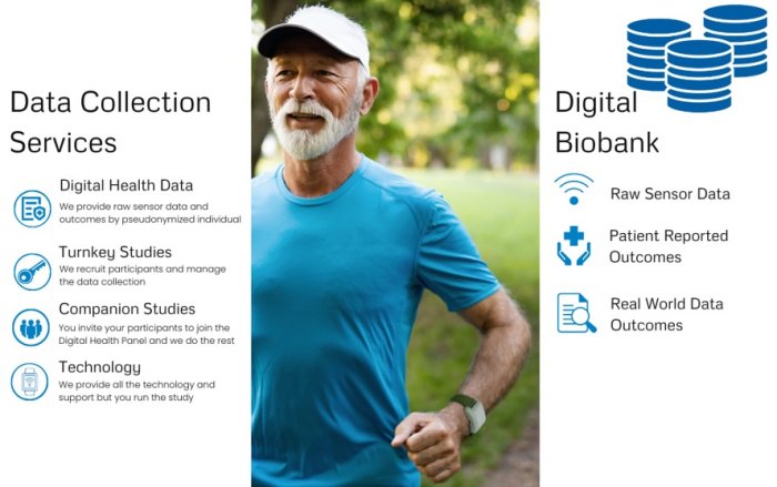Verisense Health will work with any digital health technology provider that is committed to providing raw data. The use of raw data makes the Digital Biobank device agnostic in that any device using the same type of sensors (e.g., accelerometers) can utilize analysis algorithms developed with these data. In addition, Verisense Health will work with any device manufacturer to incorporate their data into the Digital Biobank.