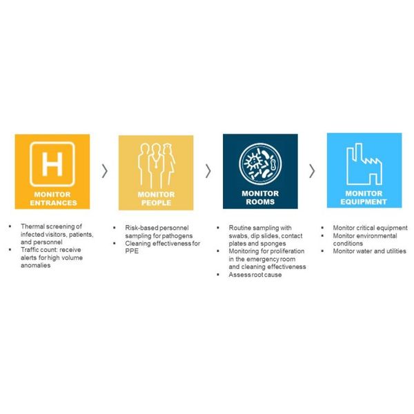 - Monitor healthcare worker’s PPE for viral and microbial contamination