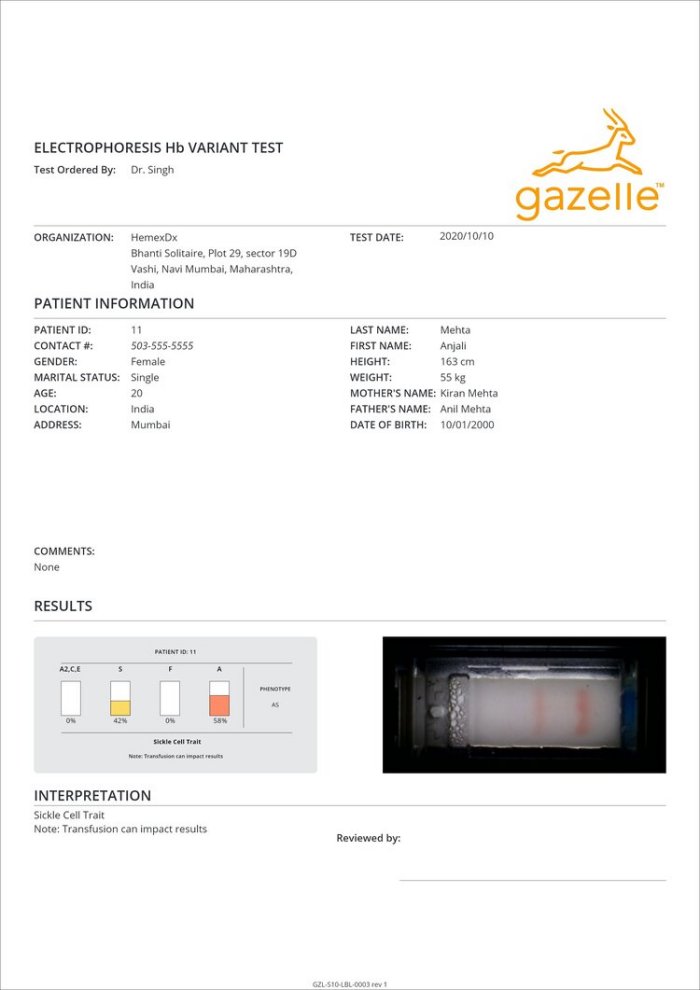 - Upload of patient reports from Gazelle Readers to the Hemex Cloud