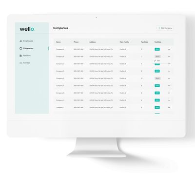 Your system of record for vaccinations, testing, and health data; Wello Health Cloud (Beta) is a secure, cloud-based solution for the data that keeps your facilities safe. Store employee, patient, and visitor information that gives total visibility into health and compliance status.