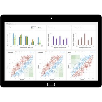 The NEC Immune Profiler predicts HLA bound peptides presented on the tumor cell surface through an integrated machine learning algorithm trained on vast amounts of mass spectrometry, binding affinity and other data. The ranked prioritized list empowers and guides the selection of peptides that are both tumor specific and immunogenic.