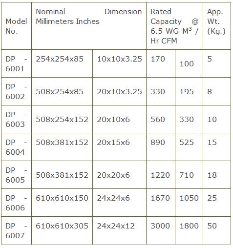 - Filter media : Synthetic Non-woven filter media supported with HDPE mesh and Gl/aluminium Expanded mesh