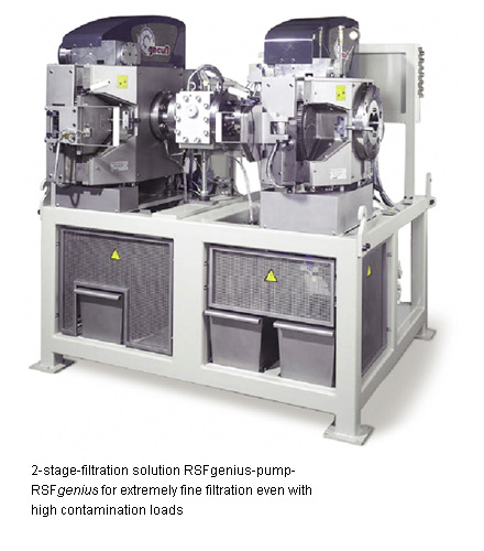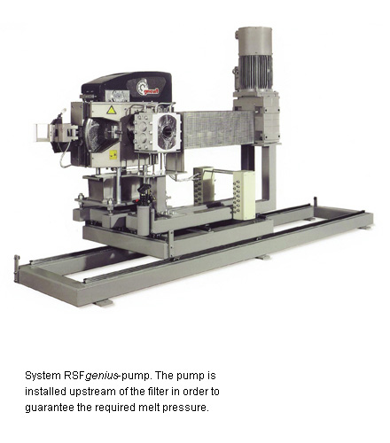 The pressure-controlled rotational speed of the filter disk provides exact data with regard to changes in melt viscosity and the level of contamination in the product. In this way, an excellent and practical process control is made possible. For example the blending ratio between inhomogeneously contaminated recycled material and virgin material can be controlled online so that the quality of the final product remains constant. This leads to a major reduction in material costs while simultaneously assuring permanent product quality.