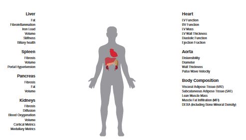 Comprehensive profiling of multiple organ health from a single, non-contrast, 30-minute MRI scan.
