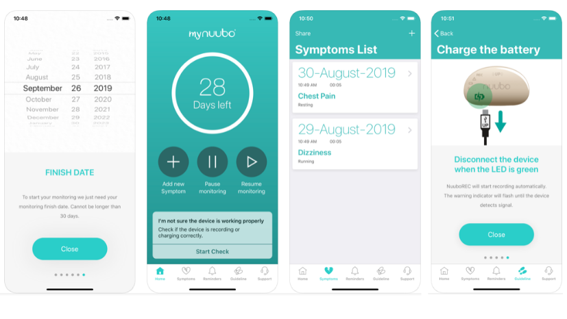 myNuubo App is intended to be used by the patient. The app will help you using the product, keeping track of your symptoms and remind you when to charge the device.