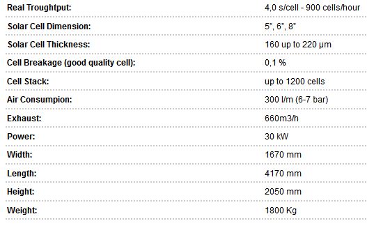 - Solar Cell dimensions: 5", 6”, 8”;