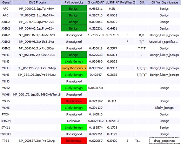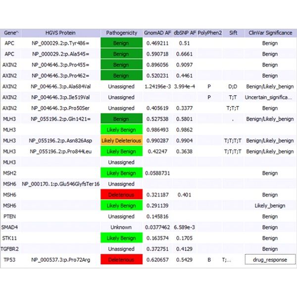 Geneticist Assistant is compatible with data processed from all leading next generation sequencing platforms such as those from Ion Torrent and Illumina. The program accepts standardized BAM and VCF files, includes prediction information from SIFT, PolyPhen2, LRT and Mutation Taster as well as conservation scores data from PhyloP, GERP++, SiPhy and population frequencies from ExAC, GnomAD, and Exome Variant Server. Additionally, information from proprietary custom databases and from the COSMIC database of somatic mutations are easily imported into the workbench.