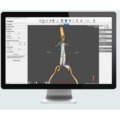 A unique, comprehensive, single platform solution for EVAR and EVAS planning procedures, Intelix™ provides a powerful toolbox for device sizing, case strategy, 3-D device in anatomy simulation, and comprehensive reporting.