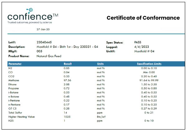 The LIMS allows the creation of a QA manufacturing specification which is used for the release of the bulk product and then allows the creation and assignment of customers specifications to the QA specification. When an order is received for a bulk product, the customer can be selected and Confience eLIMS can automatically compare the QA results to the customer`s specification and if in specification, automatically print the Certificate of Analysis in the format required by the customer.