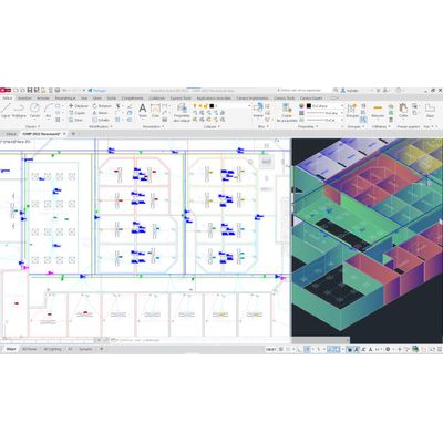 Caneco Implantation is an AutoCAD® plugin that enables the implantation of electrical material in 2D or 3D, as well as automated cable routing.