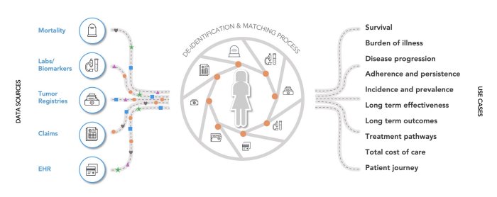 Go beyond the standard EHR fields with detailed lab results, tumor registry data, and mortality records from obituary databases and the Social Security Administration.