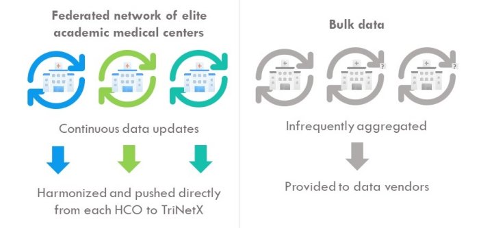 The healthcare organizations who are part of TriNetX Linked provide their data through a live, federated model, so that new observations, results, and medication orders are available to you every month.